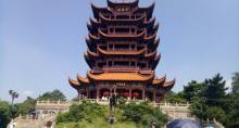 餐后,登蛇山游国家 5A 级景区江南三大名楼之一 【黄鹤楼】(游玩时间约 1 小时):龟蛇两山相夹,江上舟