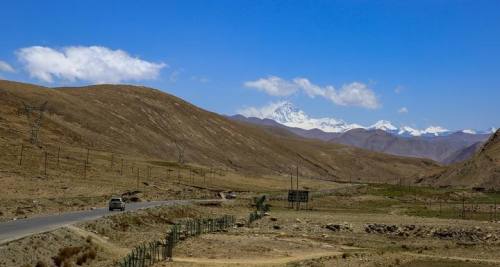 站进入阿里地区,到达神山一岗仁波齐下的小镇塔尔钦。今天途中可远瞻看到冷不岗日山峰,马泉河湿地。“世界