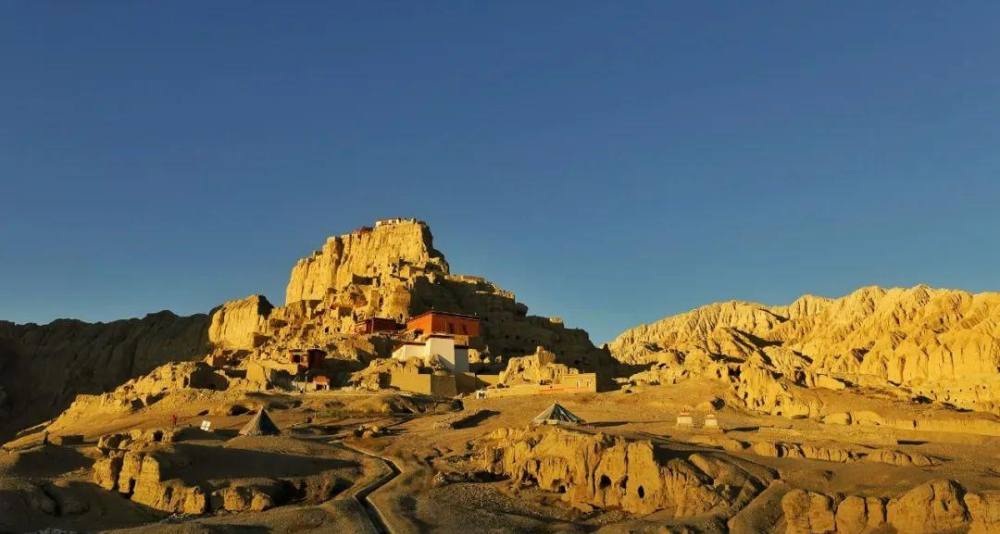 在阿里札达肥札不让区象泉河畔的-座土山上,占地约 18 万平方米,整个遗址建筑共有房屋洞窟 300 余处、佛塔(高